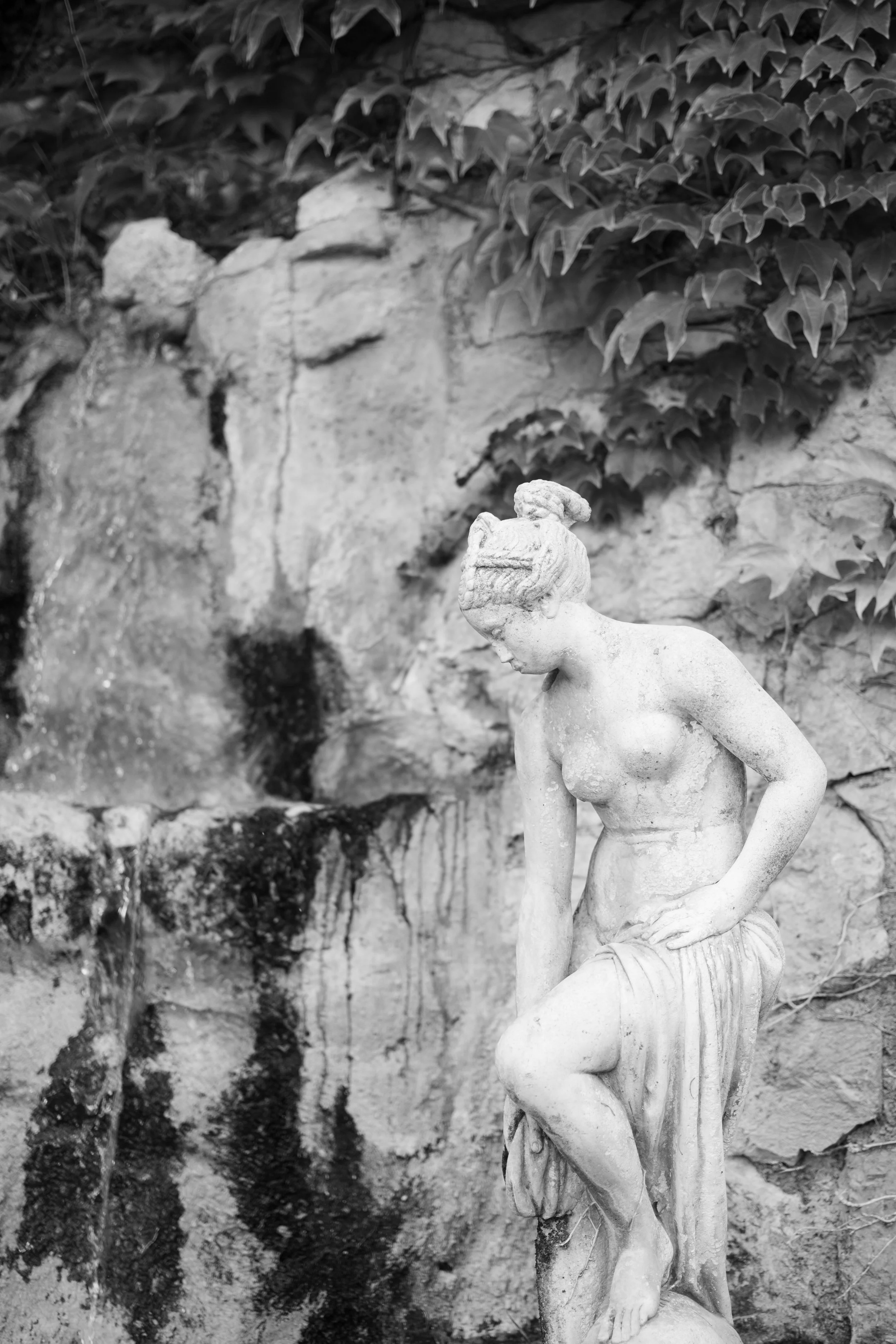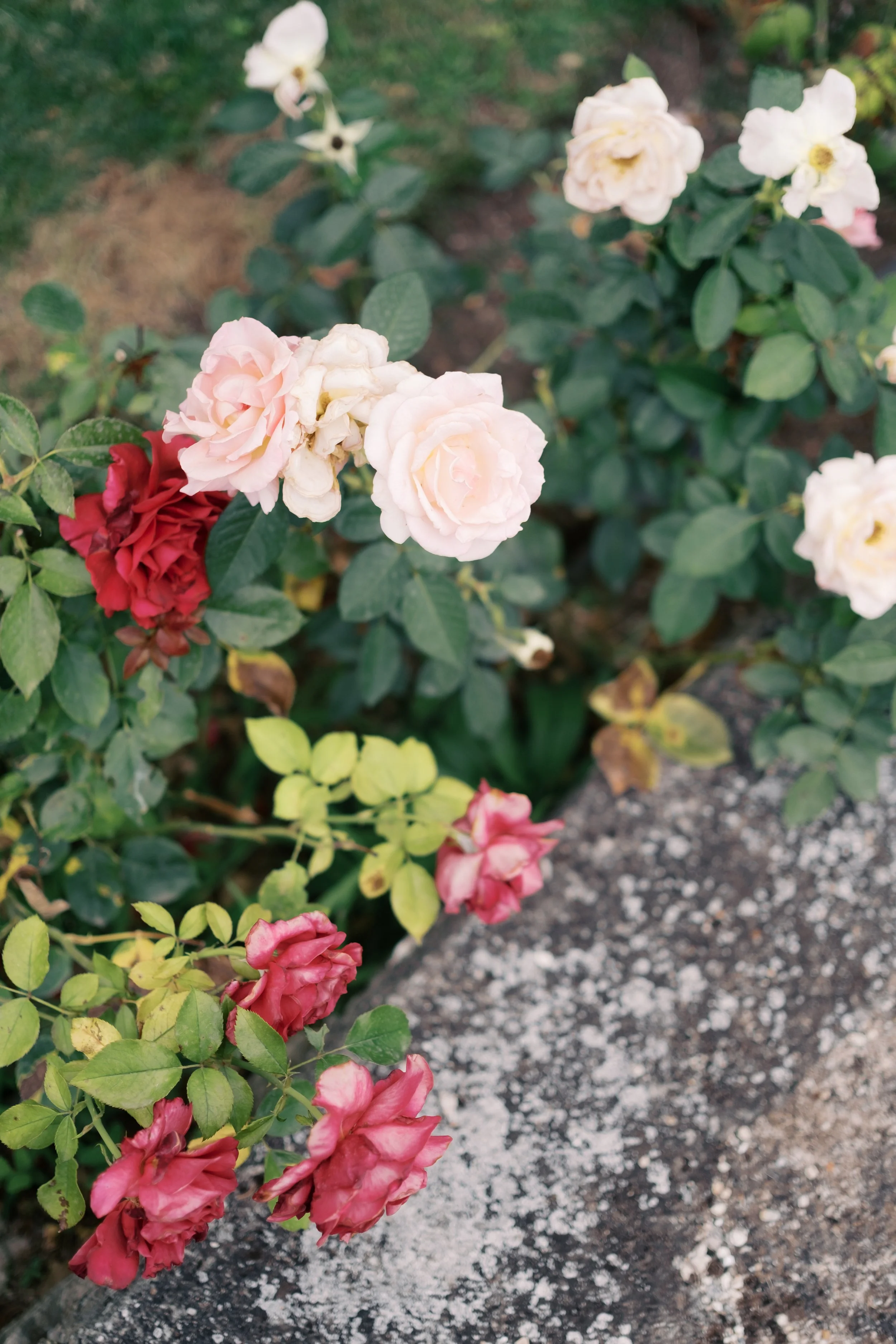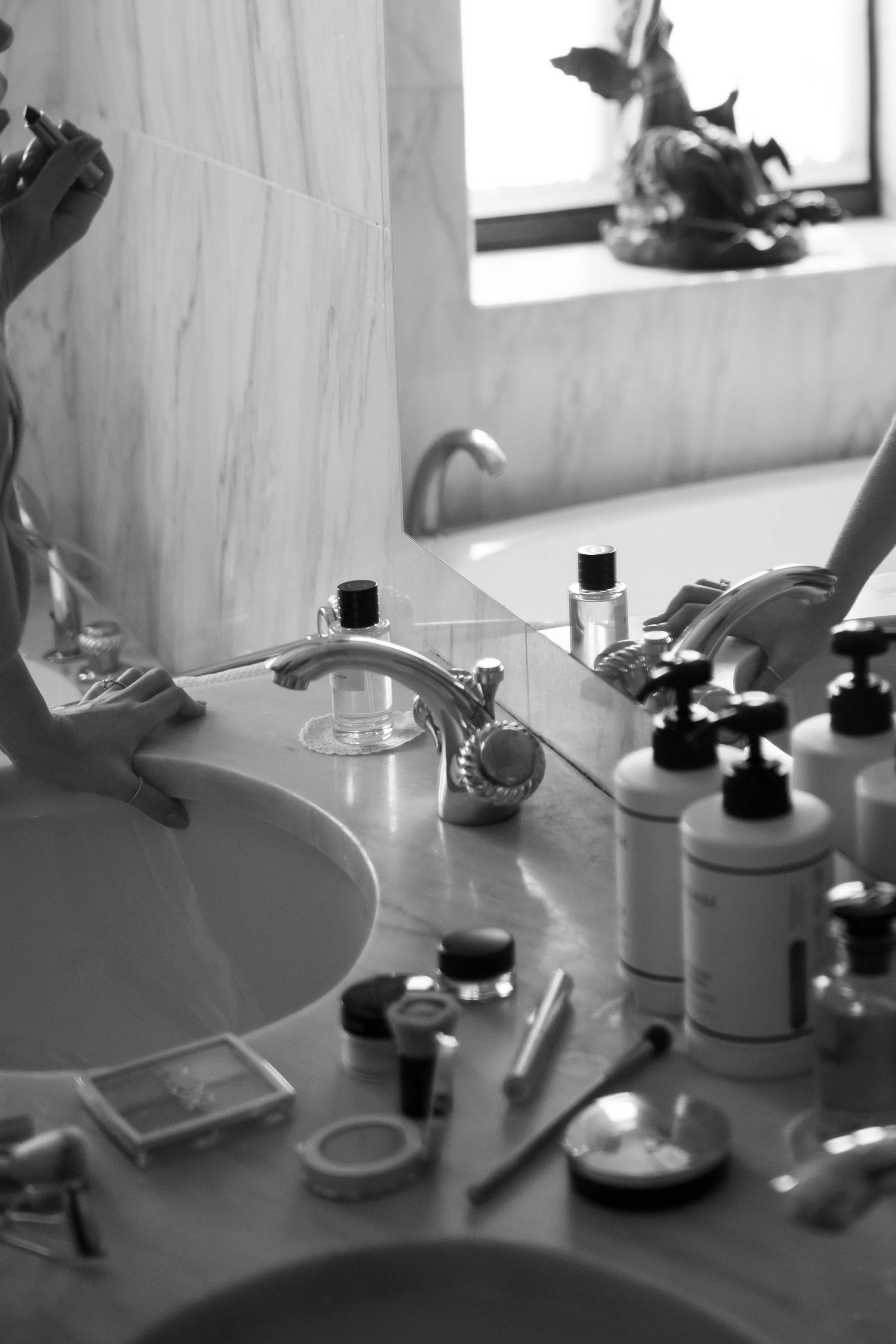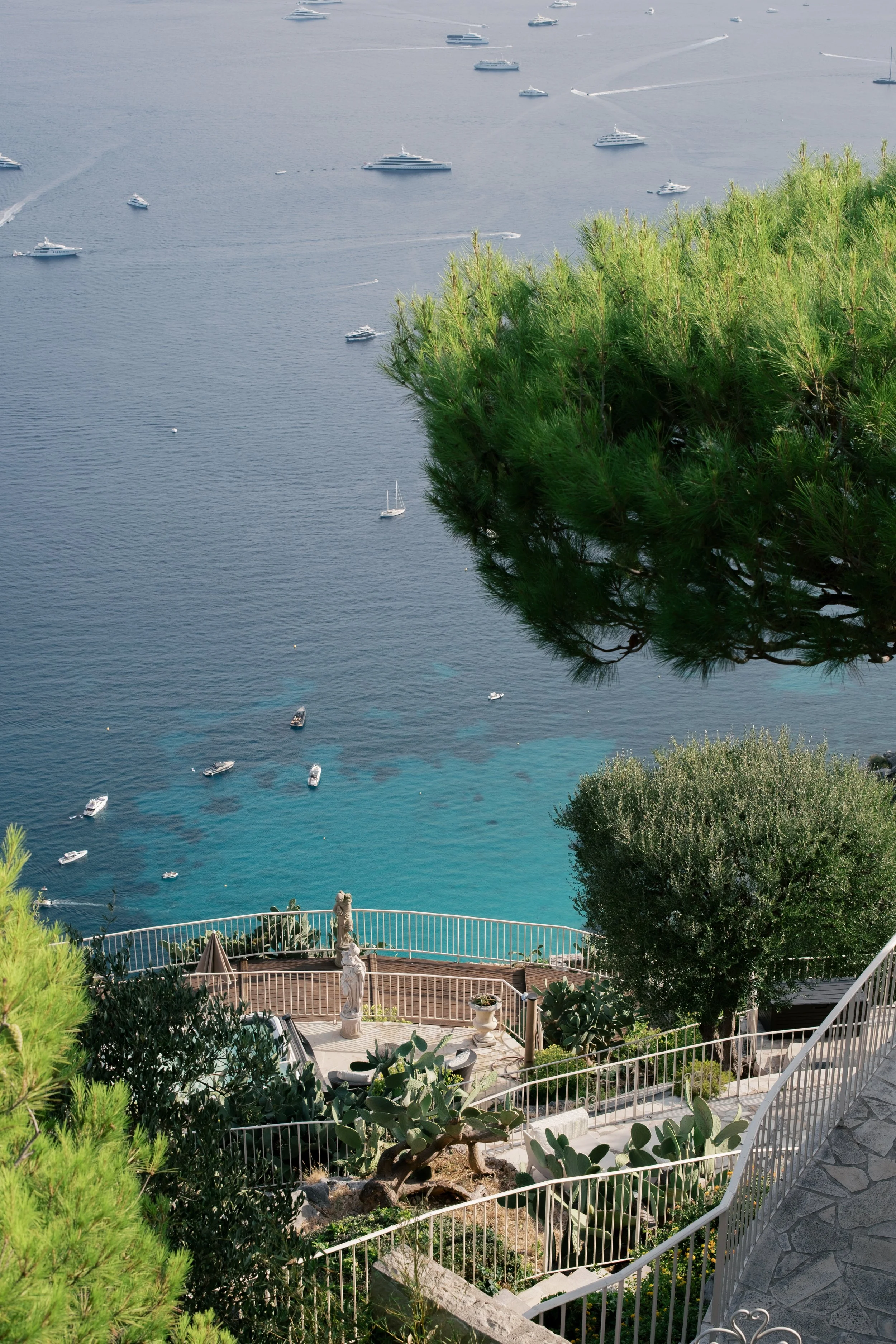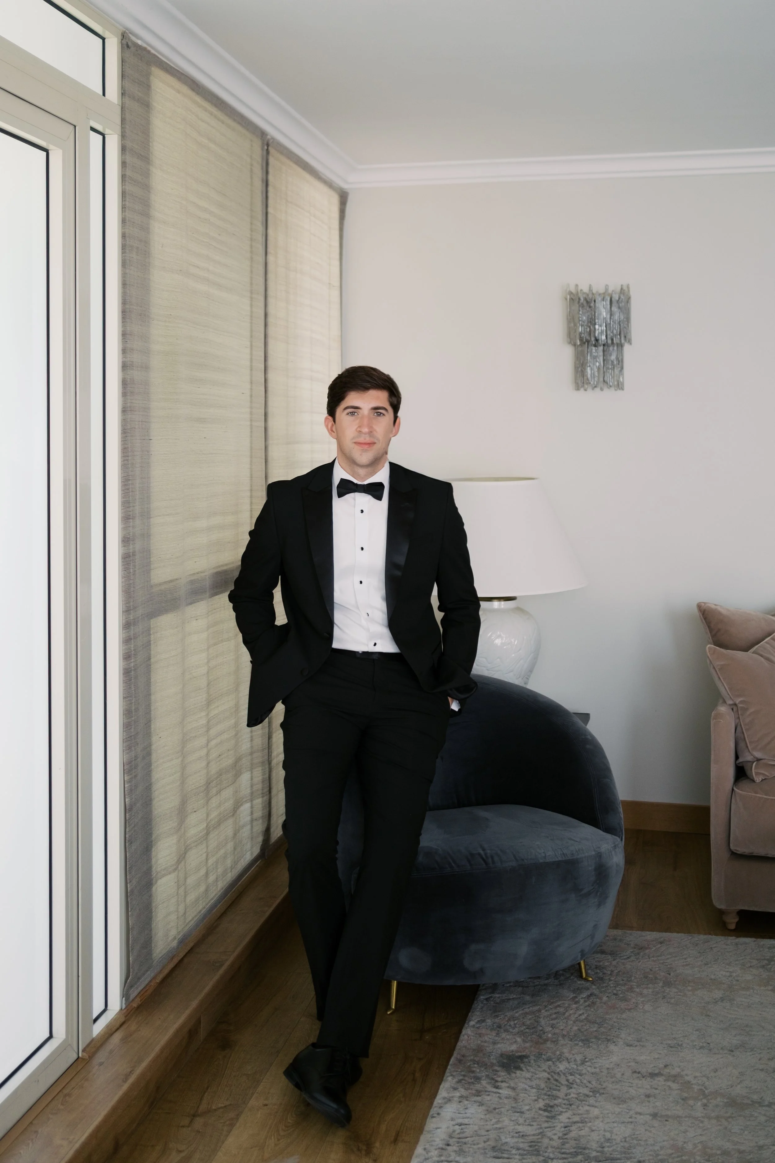 Despite starting well before sunrise, it’s probably no surprise that our wedding day wasn’t hard to wake up for. I got ready on our room’s deck with a view of the sunrise over the Mediterranean (which felt exactly how it sounds). The sun was sparkling over the water while I powdered eyeshadows and blushes to work on my own bridal glow. I was so relaxed that I ran a bit late for photos in the village! When we got back from the village, we captured these portraits in our pink, marble, bathroom while I did a round of touch ups on my face and hair. We laughed off my hair’s unwillingness to hold a curl regardless of the can of hair spray I ran through that morning. It gave us a chance to embrace the French c'est la vie, and roll out with a carefree version of bridal hair.